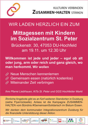 Zum 9. Mal lädt das Bündnis #GemeinsamSolidarisch im Bistum Essen zu einer solidarischen Mitmach-Aktion rund um den Welttag der Armen (16. November) ein. Auch in unserer Pfarrei wird es ein Projekt geben.